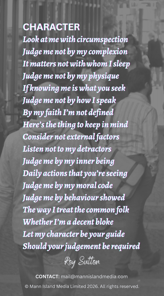 If you’re looking for an original poem about character, then you’ve come to the right place, dear reader. In fact, today, I can offer you two closely related poems.